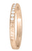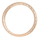 This classic engraved pink gold vintage wedding ring design is an exact reproduction of an antique original diamond band, securely bead set with 15 shimmering round brilliant cut diamonds of VS color and F/G clarity for a total carat weight of 0.11. Light scattering millgrain edging perfectly frames the row of diamonds in this traditional 1920's Art Deco rose gold diamond wedding ring.