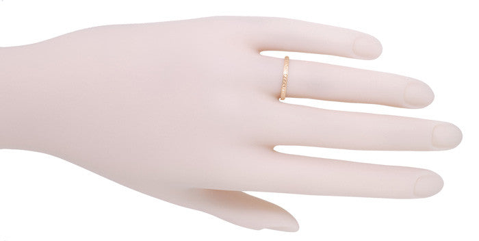 Art Deco Engraved Wheat Wedding Band in 14 Karat Rose ( Pink ) Gold