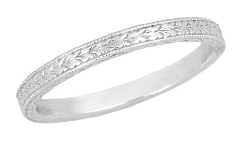 Art Deco Engraved Wheat Wedding Band in 18 Karat White Gold