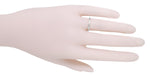 Measures 2 millimeters wide and 1.4 mm high off the finger, with a small plain high polish area at the bottom of the band to allow for future ring re-sizing.