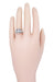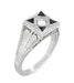 An Art Deco Greek key filigree design adorns the outward facing sides and a bold curved wheat pattern graces the shoulders of the ring. This wonderful antique style ring is a wearable work of art - sure to be admired!