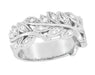 Mid Century Modern Leaf Spray Sculptural Diamonds Wide Wedding Ring in 14 Karat White Gold