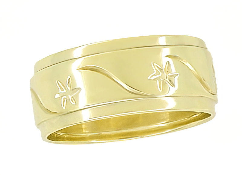 Antique Design Scrolls and Stars Victorian Wide Wedding Ring in Yellow Gold - 7mm Width
