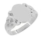This antique design white gold Art Nouveau signet ring is crafted in an attractive symmetrical scrolling vines motif, and is an exact reproduction of an original vintage signet ring, crafted to order by our jewelers in your choice of 10K or 14K white gold.