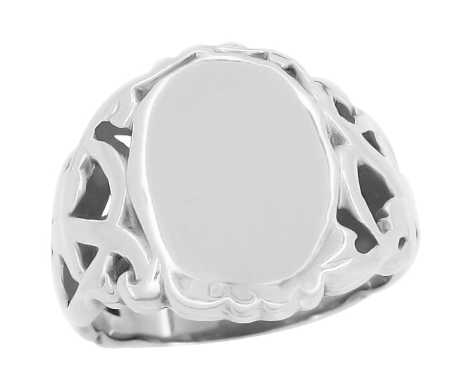 Art Nouveau Filigree Vines 14 Karat White Gold Oval Signet Ring