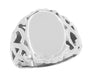 This handsome white gold Art Nouveau signet ring features a sinuous open vines filigree design surrounding a large center oval which measures 15mm x 11mm (5/8 inch high by 7/16 inch wide).