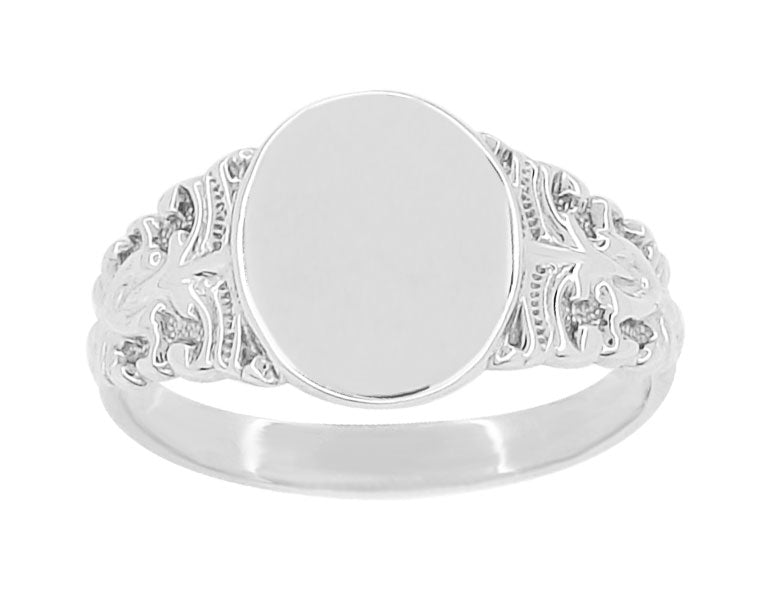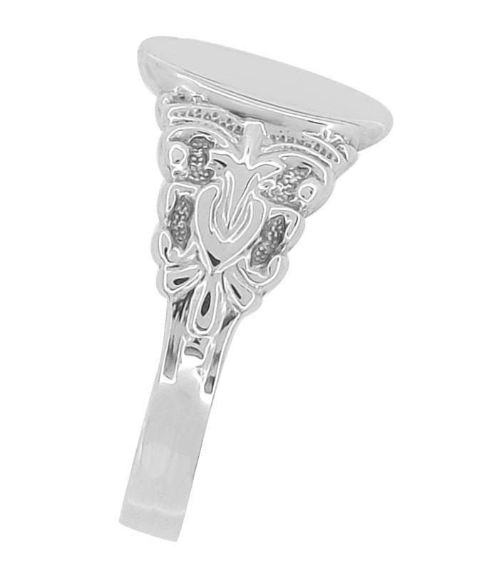 Fleur-de-Lis Victorian Oval Signet Ring in White Gold