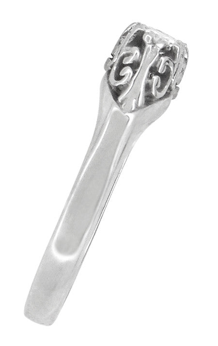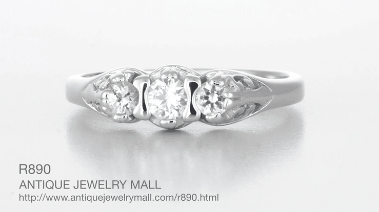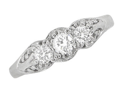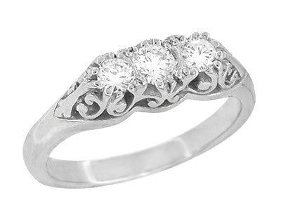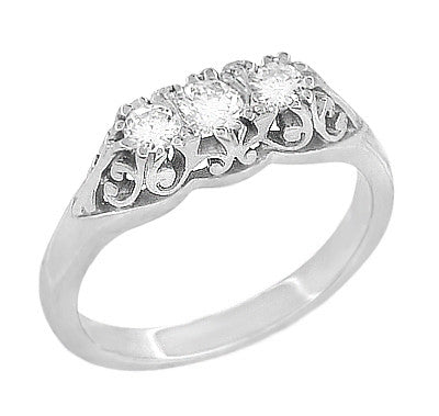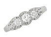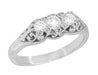 Filigree "Three Stone" Diamond Art Deco Ring in White Gold