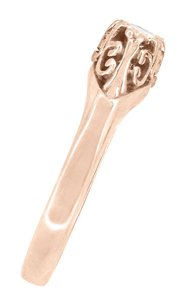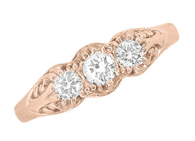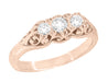 Art Deco Filigree 3 Stone Diamond Ring in 14 Karat Rose ( Pink ) Gold