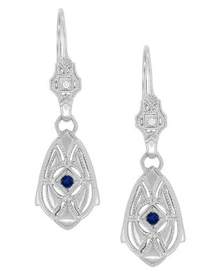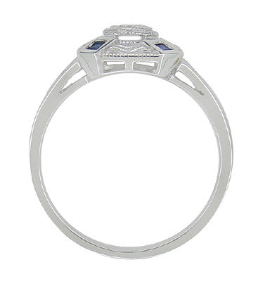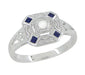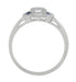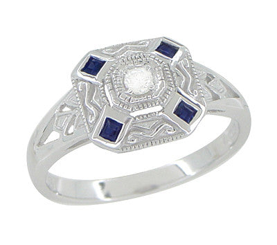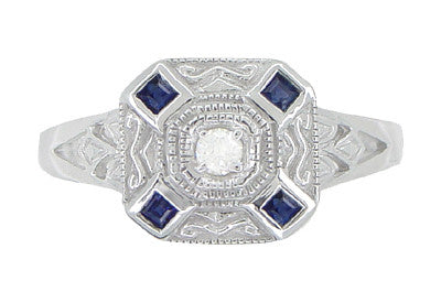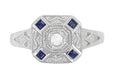 Art Deco Square Sapphires and Diamond Engraved Ring in 14 Karat White Gold
