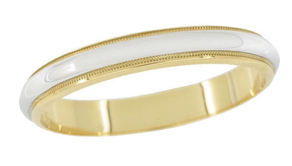 Mixed Metals Millgrain Edge Heirloom Wedding Band in Two Tone 14 Karat White and Yellow Gold - 3.5mm