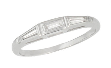 1980's Squared Top Old Single Cut Diamonds Vintage Wedding Band in 14K White Gold