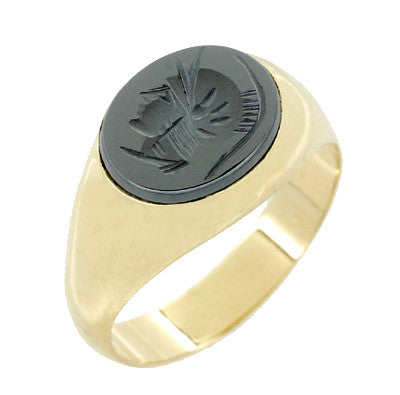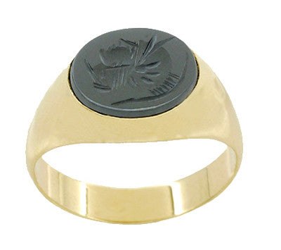 Vintage Hematite Intaglio Ring in 14 Karat Yellow Gold