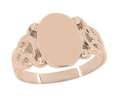 Kent Victorian Carved Vintage Inspired 14K Rose Gold Oval Signet Ring
