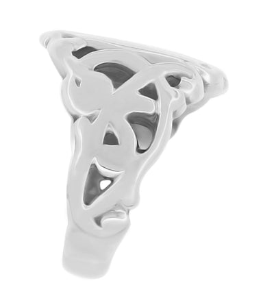 14 Karat White Gold Victorian Side Carved Antique Engravable Oval Signet Ring - Kent