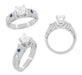 Art Deco 1 Carat Princess Cut Diamond Wheat Engraved Engagement Ring Setting in Platinum with Diamonds and Princess Cut Sapphires