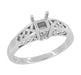 Antique Style Art Nouveau Filigree Engagement Ring Setting for a 1 Carat Princess, Radiant, Asscher or Cushion Cut Diamond in 14K or 18K White Gold