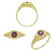 Art Deco Sunflowers Amethyst Filigree Ring in 14 Karat Yellow Gold