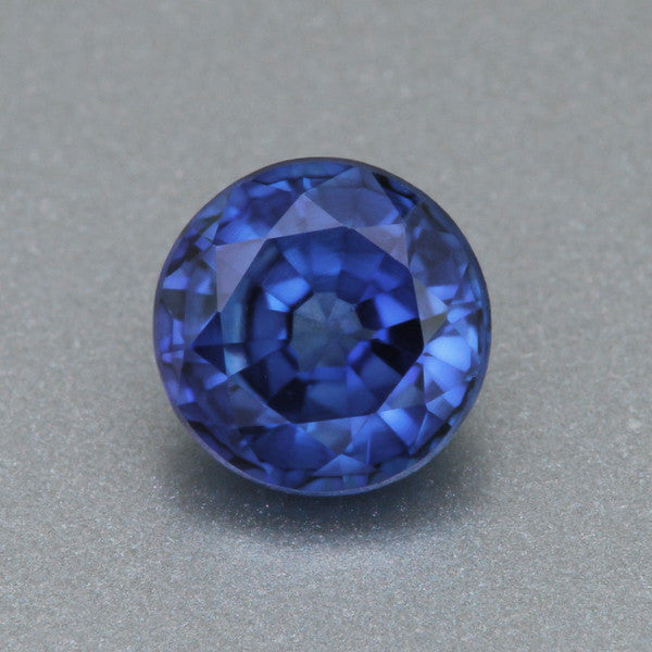 This gorgeous 6mm 1.23 carat lab created sapphire loose gemstone is a brilliant medium royal blue with a tinge of violet. The perfect birthstone choice for an ethical engagement ring, this loose sapphire stone has a stunning "no excuses" natural looking appearance which is hard to find in lab created sapphires.