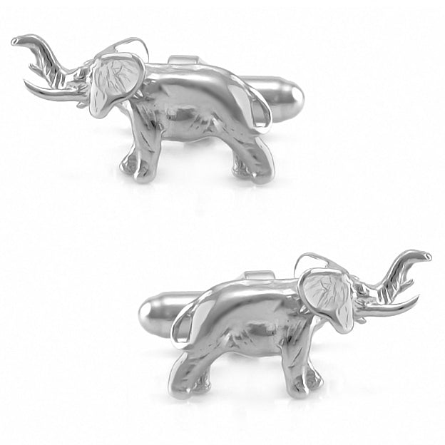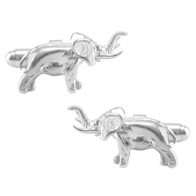 Lucky Elephant Cuff Links in Sterling Silver - Trunk Up