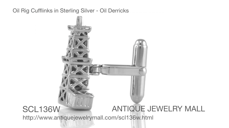These unique high quality solid 925 sterling silver oil rig cuff links have strong torpedo double swivel backs for a lifetime of wear, and measure 1/4 wide by 1 inch high.