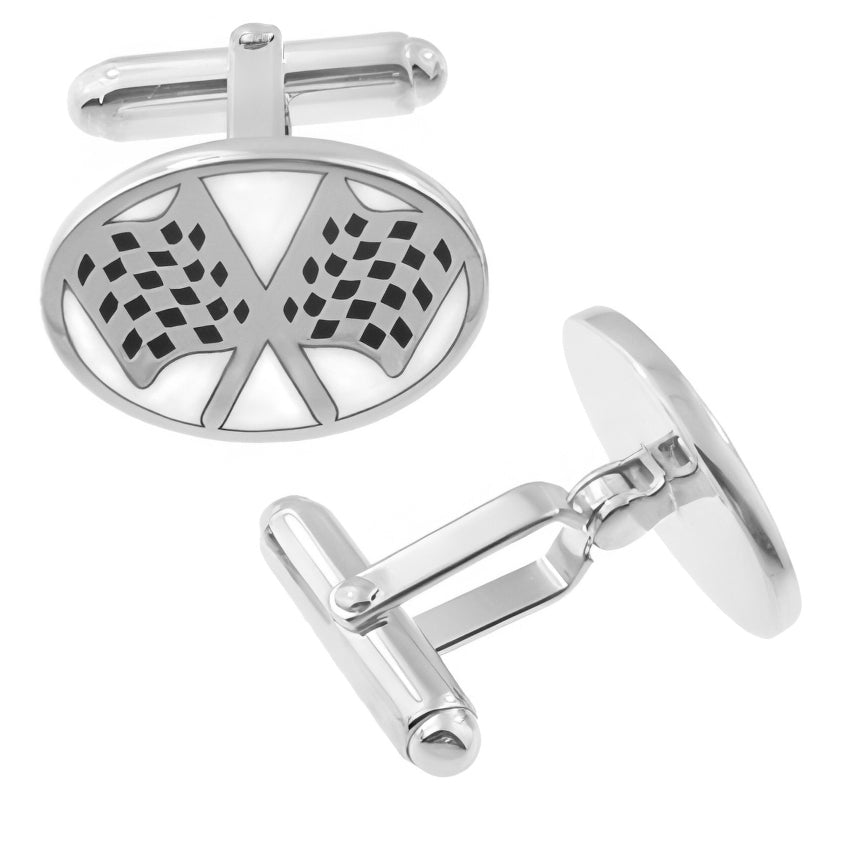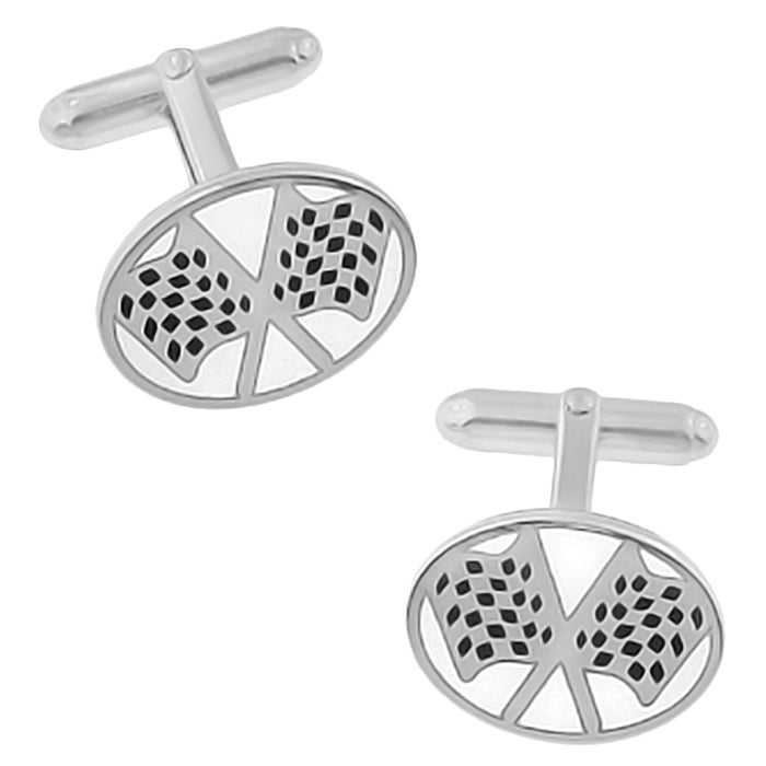Measuring 1 1/8 inch long by 1 1/5 inch high, these solid sterling silver cufflinks are a terrific way to wear your enthusiasm for motor sports.