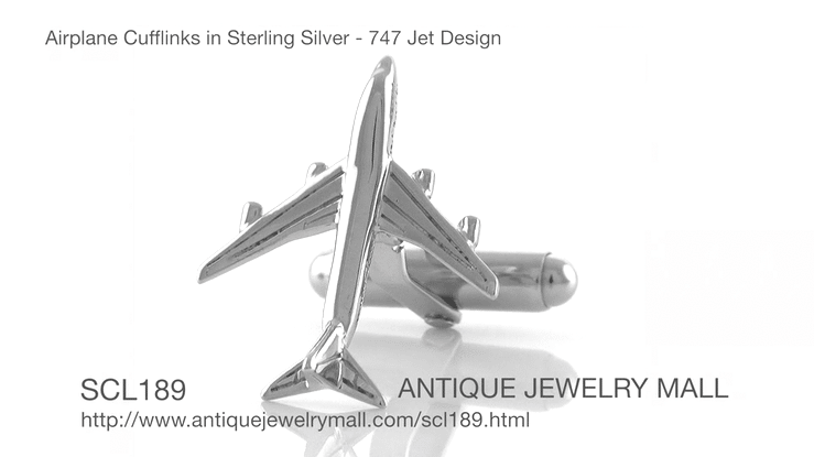 Airplane Cufflinks in Sterling Silver - 747 Jet Design