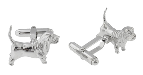 These delightful basset hound cufflinks feature an anti-tarnish rhodium finish and strong torpedo double swivel backs for ease of use and a lifetime of wear.