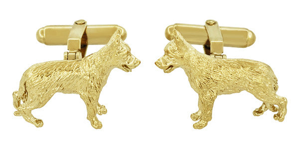 These beautiful 925 sterling silver shepherd cufflinks have a high polish anti-tarnish 18K yellow gold plated finish and feature strong torpedo double swivel backs for ease of use and a lifetime of wear. A wonderful jewelry gift for a shepherd dog owner, these high quality shepherd cuff links are sure to be appreciated.