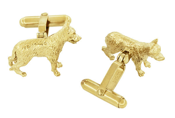 German Shepherd Cufflinks in Sterling Silver with Yellow Gold Finish