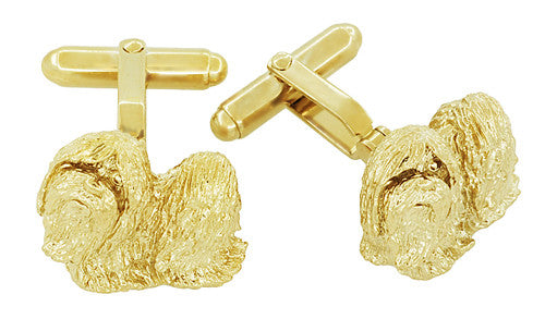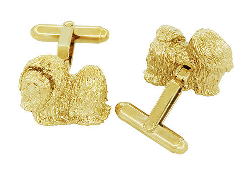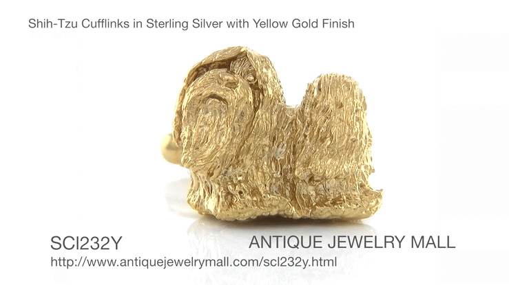 A great fine jewelry gift for a shih-tzu lover, these stunning sterling silver and yellow gold vermeil shih-tzu dog cuff links feature a unique fine shih-tzu jewelry design, with strong torpedo double swivel backs for ease of use and a lifetime of wear.