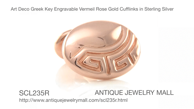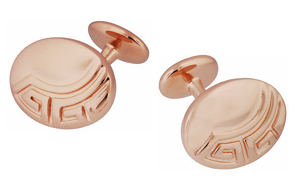 Art Deco Greek Key Engravable Vermeil Rose Gold Cufflinks in Sterling Silver
