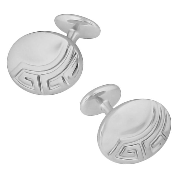 Vintage Design Greek Key Engravable Art Deco Cufflinks in Sterling Silver