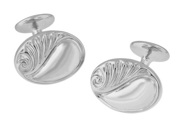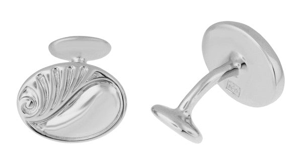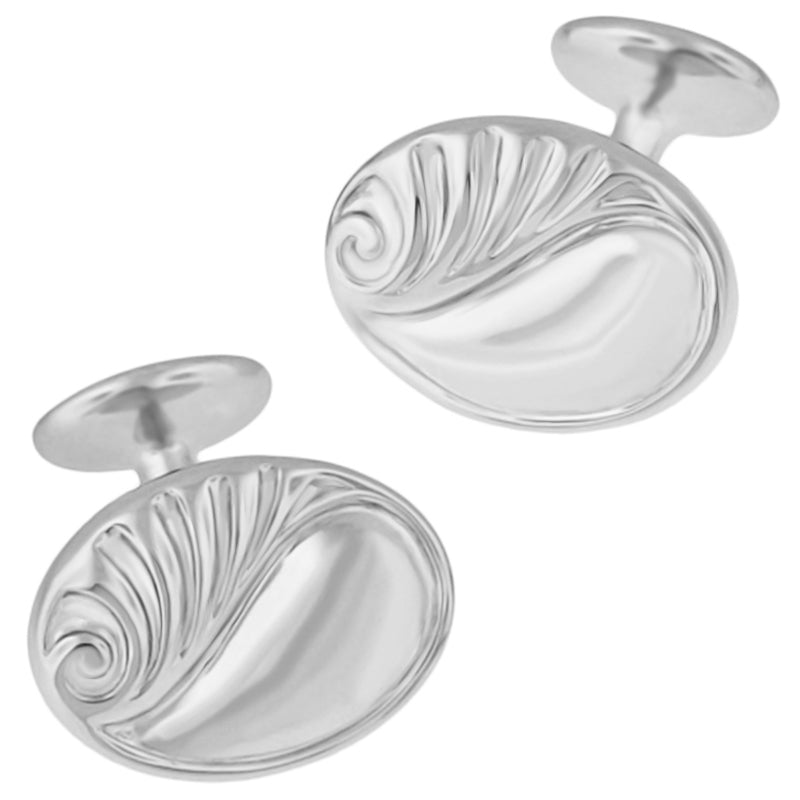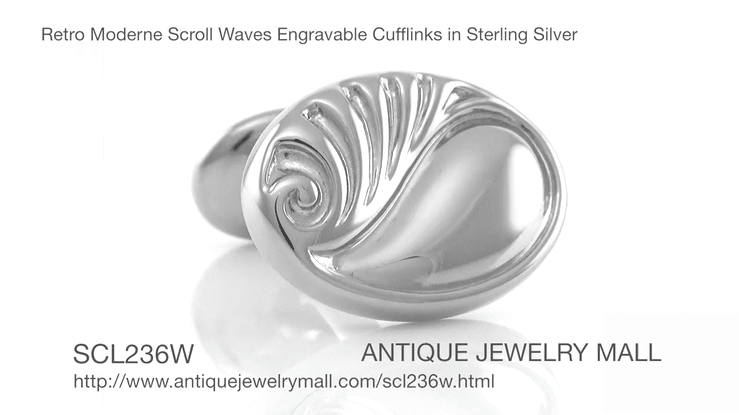 Mid Century Retro Modern Scroll Waves Engravable Cufflinks in Sterling Silver