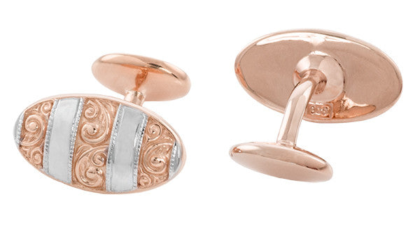 Victorian Engraved Scrolls Vintage Cufflinks in Sterling Silver with Rose Gold Two Tone Vermeil