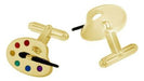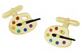 Enameled Painters Paint Palette and Brush Cufflinks in Sterling Silver with Yellow Gold Vermeil