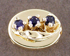 Floral Motif Oval Slide Set with Sapphires in 14 Karat Gold