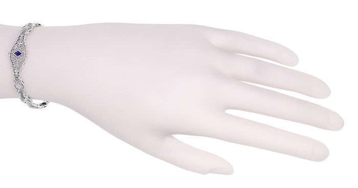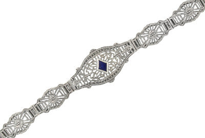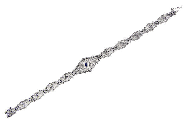 Art Deco Filigree Sapphire Bracelet in Sterling Silver