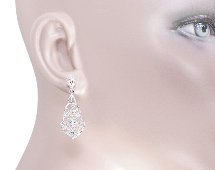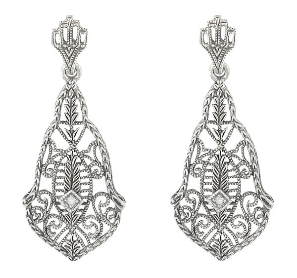Art Deco Diamonds and Scrolls Filigree Dangling Earrings in Sterling Silver