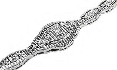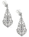 These gorgeous romantic Art Deco filigree earrings are hand crafted in sterling silver in lavish detail. The body of each earring dangles from a geometric filigree top for plenty of eye-catching movement. At the center of each earring is a round brilliant cut dark blue sapphire ( September Birthstone ). Total weight sapphire weight for the pair is 0.06 carat. Measuring 1 1/2 inches long by 5/8 inch wide, they have secure notched posts. The timeless style of these exquisite must-have classic earrings is sure to be cherished for generations to come.