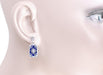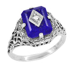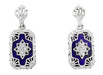 Art Deco Filigree Lapis Lazuli and Diamond Earrings in Sterling Silver, 1920s Vintage Engraved Design