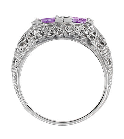 Art Deco Lavender Amethyst Duo Filigree Ring in Sterling Silver