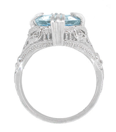 Art Deco Filigree Claw Prong Oval Blue Topaz Statement Ring in Sterling Silver - 4.75 Carats