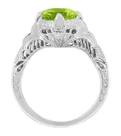 Art Deco Vintage Engraved Filigree Peridot Ring in Sterling Silver