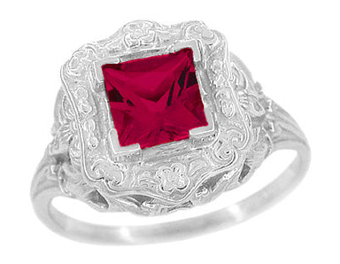 Art Deco Engraved Filigree 1.20 Carat Ruby Promise Ring in Sterling Silver