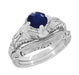 Art Deco Blue Sapphire Promise Ring with Engraved Filigree in Sterling Silver