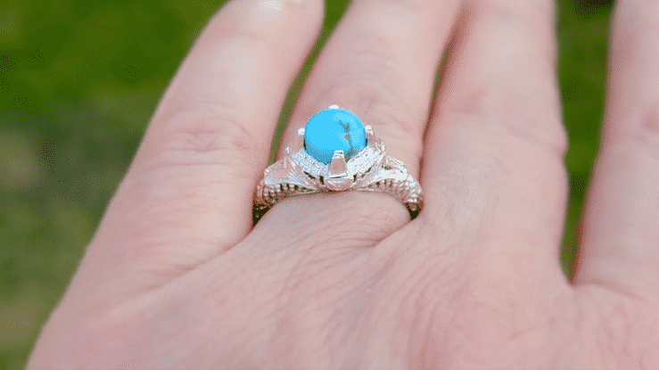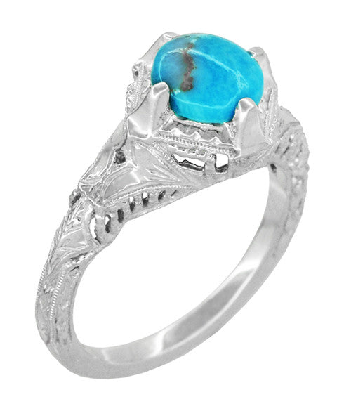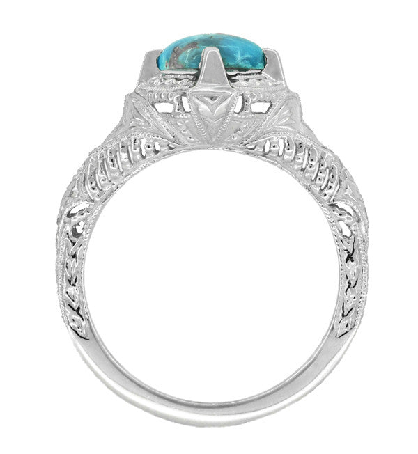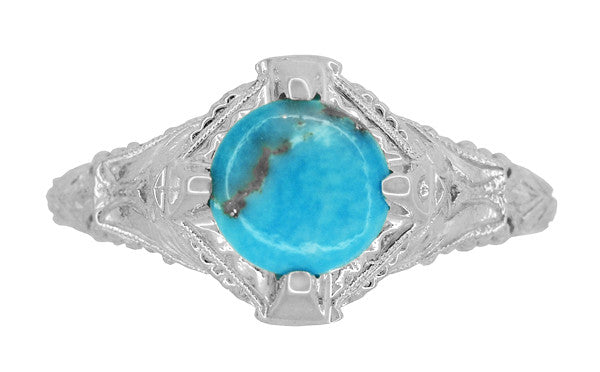 Art Deco Arizona Turquoise Engraved Filigree Ring in Sterling Silver
