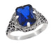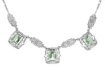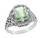 Art Deco Flowers and Leaves Emerald Cut Prasiolite ( Green Amethyst ) Filigree Ring in Sterling Silver