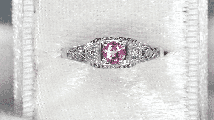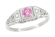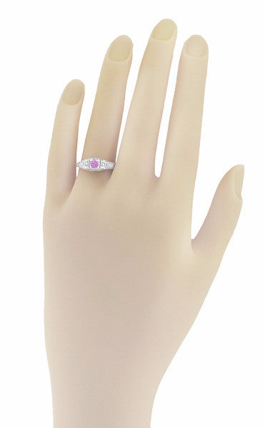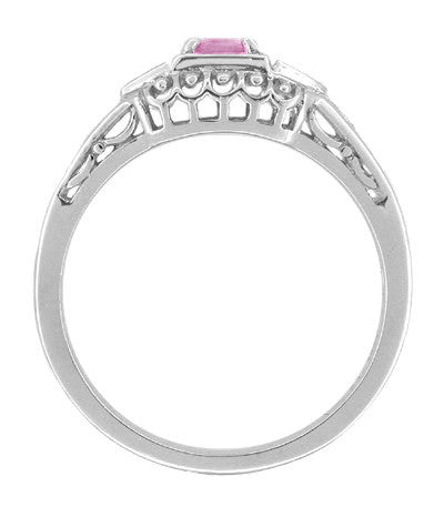 Art Deco Pink Sapphire and Diamonds Filigree Promise Ring in Sterling Silver