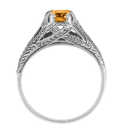 Vintage Style Filigree Natural Citrine Promise Ring in Sterling Silver